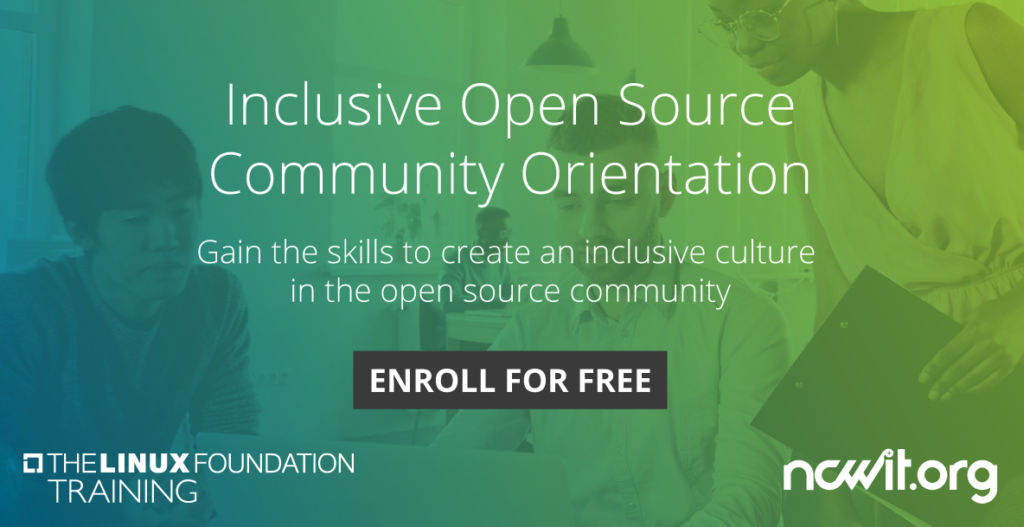 Inclusive Open Source Community Orientation (LFC102) is a new training course from The Linux Foundation and National Center for Women & Information Technology (NCWIT) and is designed to provide essential background knowledge and practical skills to create an inclusive culture in the open source community.
