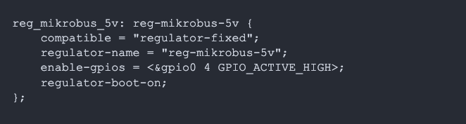 To enable the reg-mikrobus-5v regulator again, we can run a similar shell command: