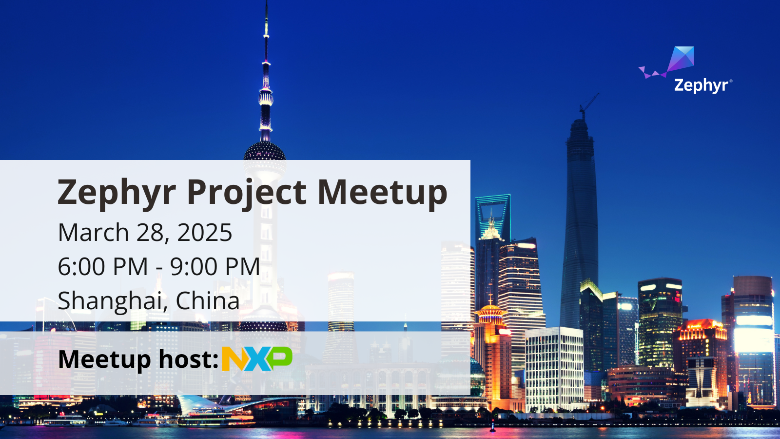 Are you passionate about open source, embedded systems programming, and software development? Don’t miss the very first Zephyr Project Meetup in Shanghai, China, happening on March 28, 2025, from 6:00 PM to 9:00 PM.