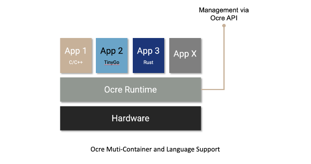 One of the key distinguishing features of the Ocre containerization solution is its comprehensive support for multiple programming languages beyond C and C++ which accounts for the overwhelming majority of embedded applications today. While these languages remain foundational in embedded development, Project Ocre goes a step further by providing first-class support for languages such as C/C++, GoLang, RUST, Zig, JavaScript, and more.