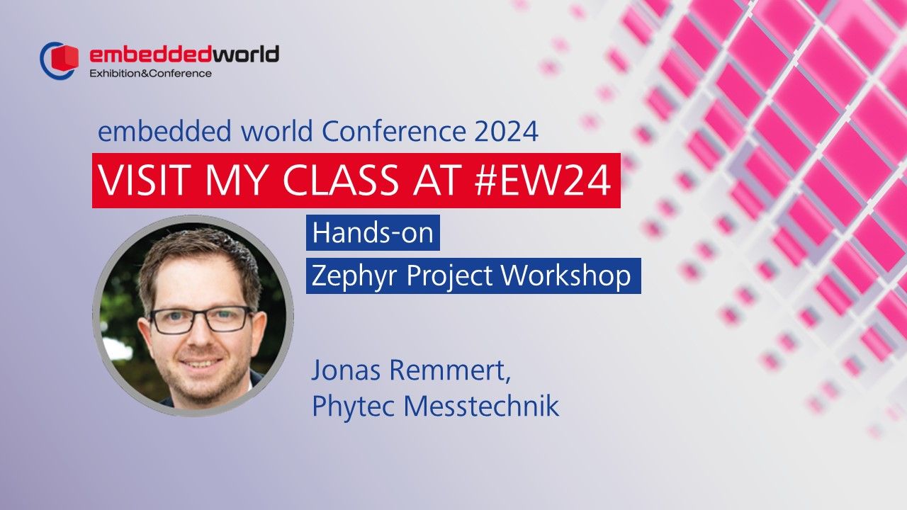 On April 9th, there is a workshop on the Zephyr Project at the Embedded World Conference in Nuremberg, Germany. This workshop is tailored for participants interested in Zephyr and its application in low power IoT products.