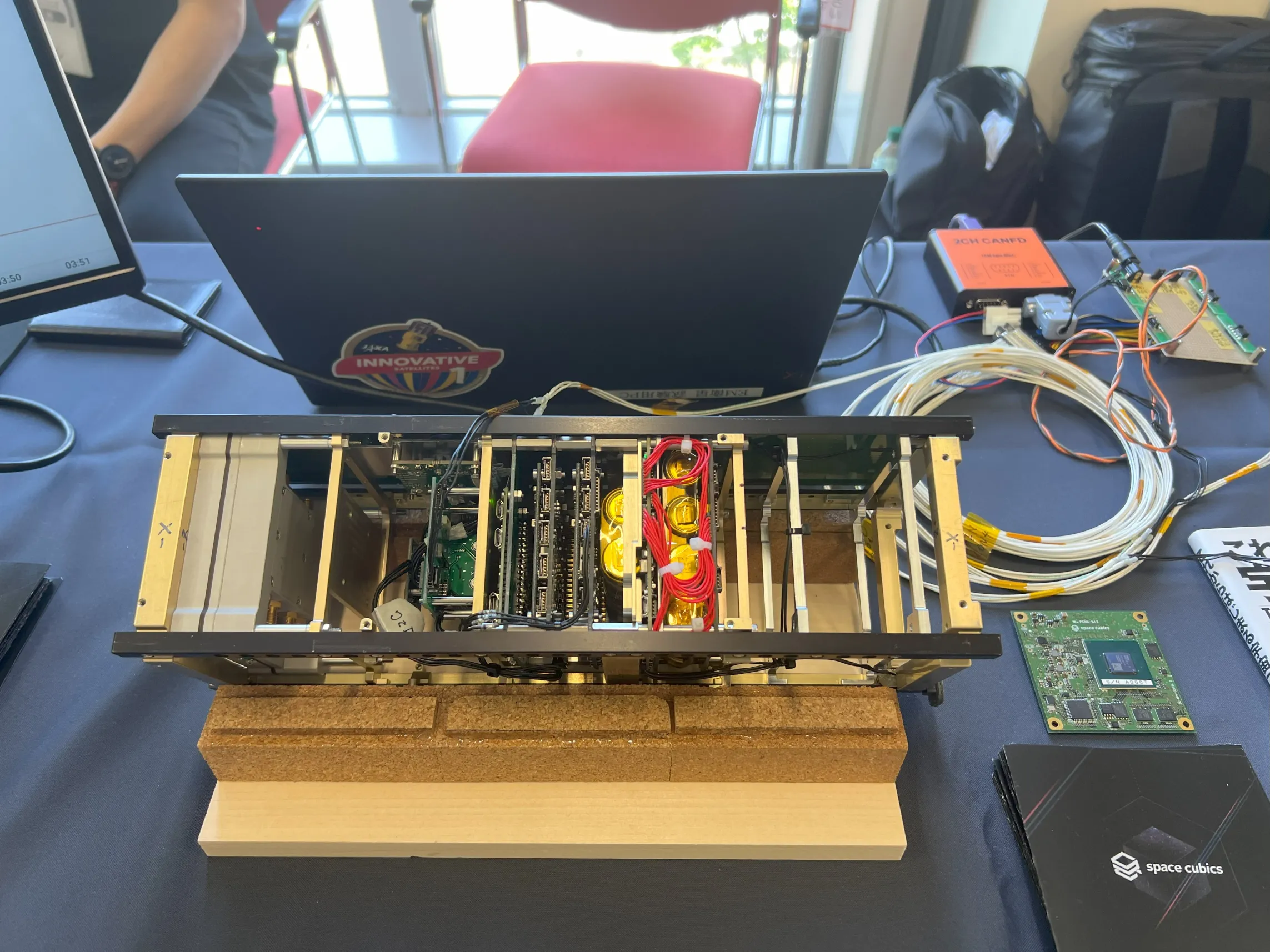 CubeSat is a standardized 100mm square-form modularized satellite. It can connect some modules to make them bigger. SpaceCubics exhibited its satellite module. Radiation is a problem in space as well.