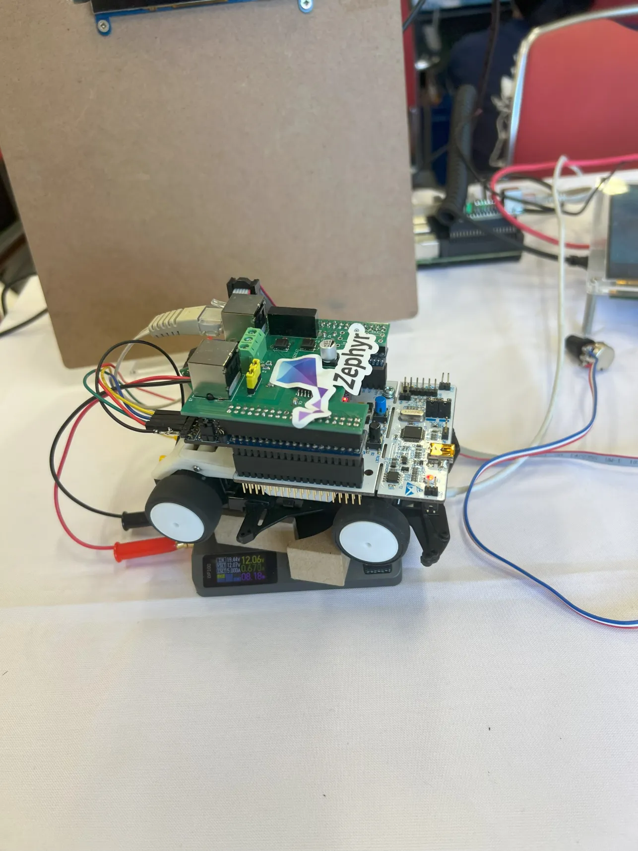 This control box contains many boards, which run Zephyr. This visually impressive robot captured the attention of visitors.