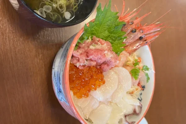 The area is also blessed with food, and as we can see from Susan’s photo above, it is being marketed as something the area is proud of. You can enjoy meals in the market in the morning. Sushi and seafood bowls using salmon roe are popular.