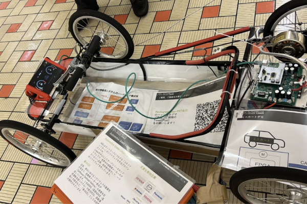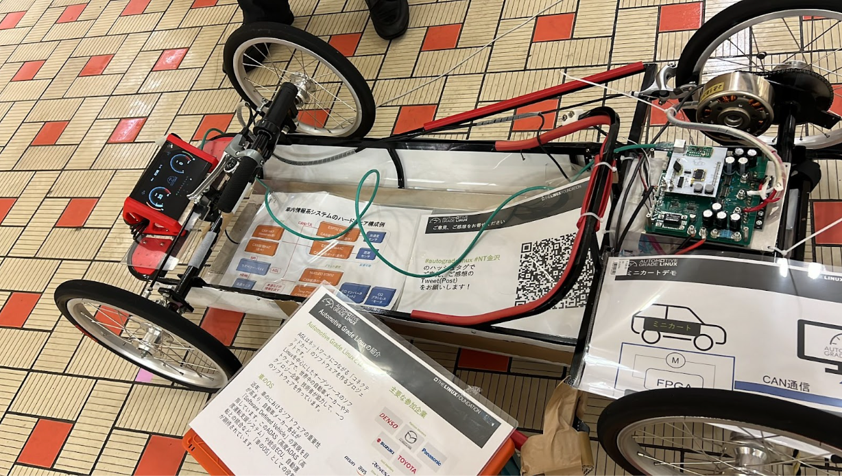 This is a demo of a commercially available electric vehicle education kit with AGL built into it. It was difficult to transport, so we didn’t exhibit it this event, but it also uses a Zephyr to drive a three-phase brushless motor, so (the computer system) is almost the same.