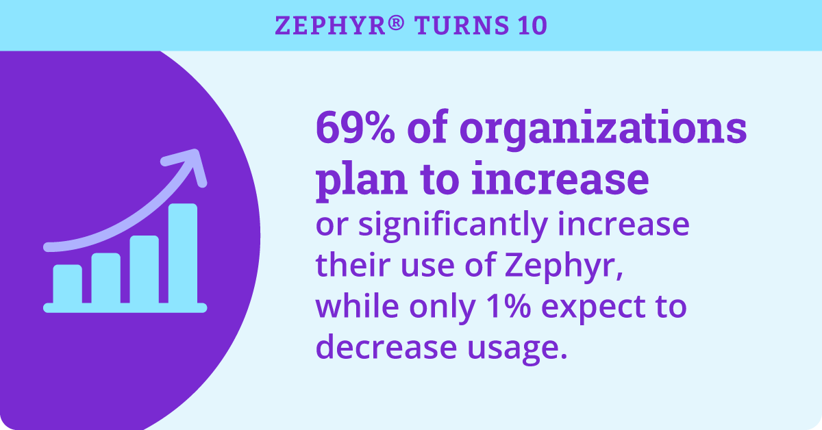 The momentum is undeniable: 69% of organizations plan to increase or significantly increase their use of Zephyr over the next few years, while only a nominal 1% expect a decrease. This isn’t just about usage; it’s about trust. Organizations are now making long-term production commitments, with 52% supporting products running Zephyr for five to ten years or longer.