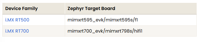 The same Zephyr build environment can be used for all of these targets, allowing a unified development workflow across ARM and DSP cores.