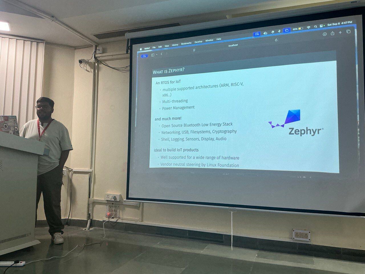 - Akarskshan Kapoor conducted a highly interactive workshop on running Zephyr RTOS. This hands-on session helped newcomers get started with Zephyr development directly, bridging the gap between theory and practice.