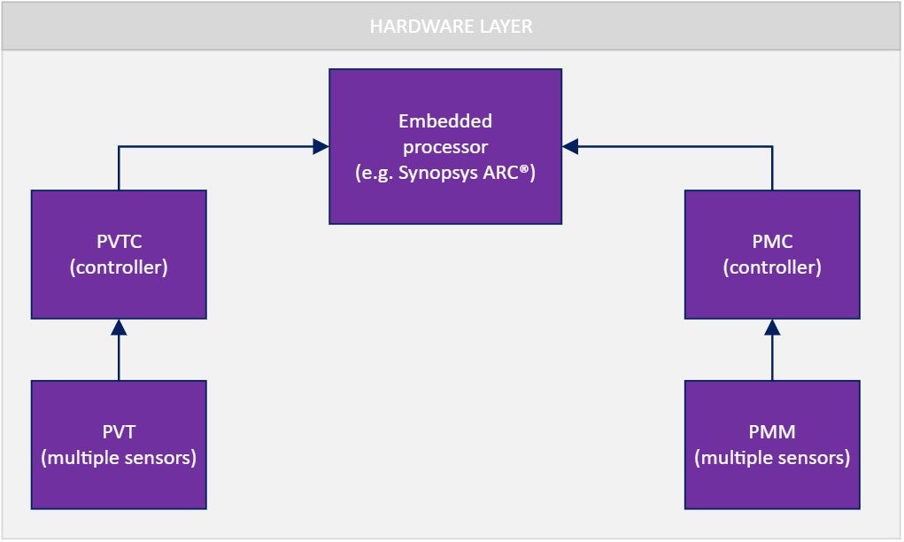 Dedicated controllers manage all sensors, handle the configuration and data collection, and provide data to a dedicated embedded processor (e.g. Synopsys ARC® [3]) upon request.