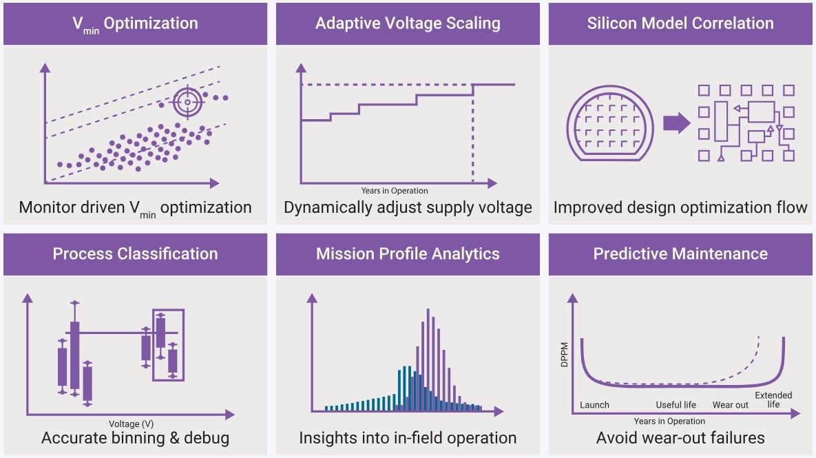 This innovative technology continuously, intelligently, and efficiently collects, tags, and stores all types of silicon monitor data allowing for analysis and optimization during the design, manufacturing, testing, and deployment of semiconductors in end-user systems.
