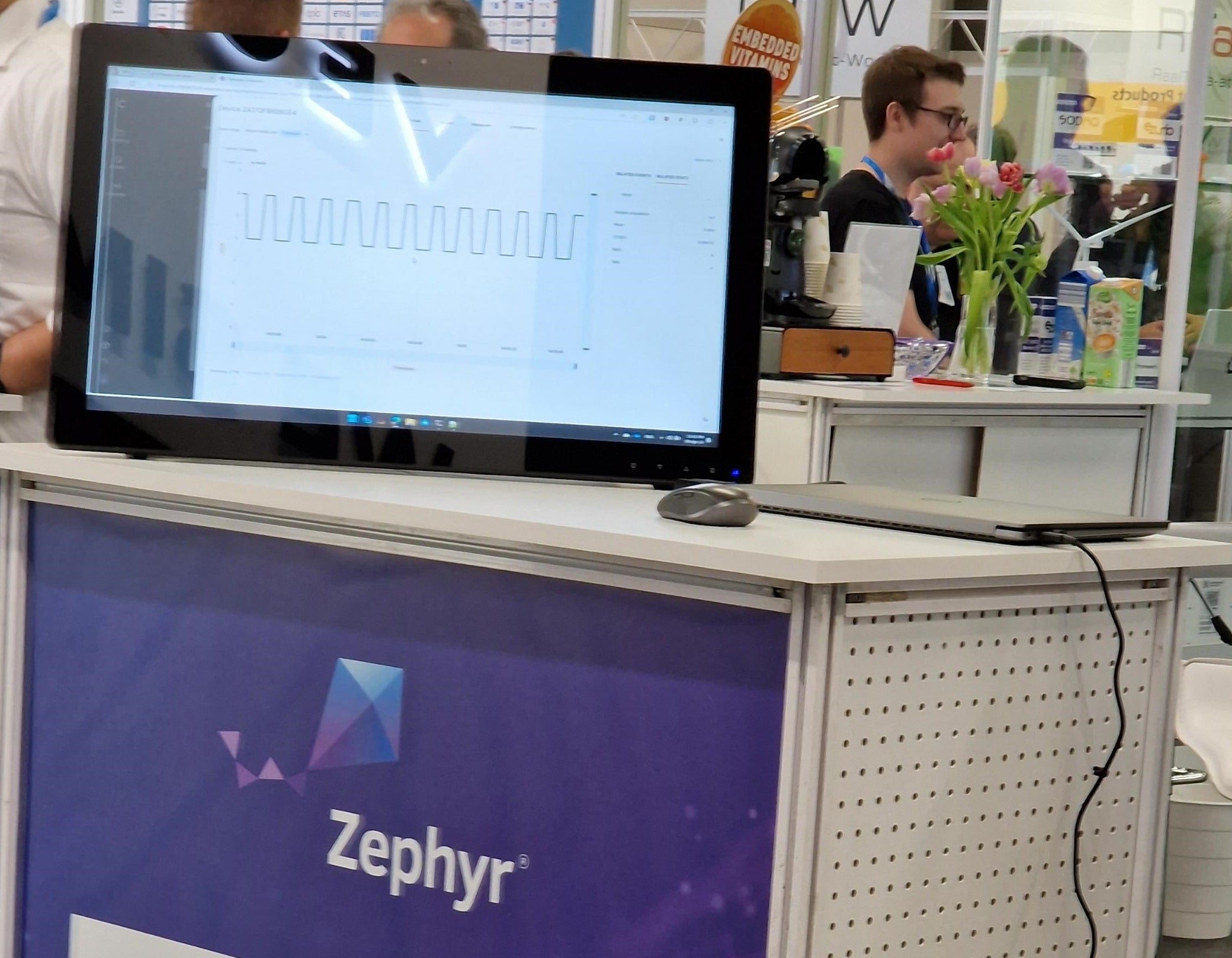 The demo caught multiple visitors’ attention as it conceptually differs from more obvious use cases with Zephyr RTOS running on small wearable devices, discrete sensors, etc.