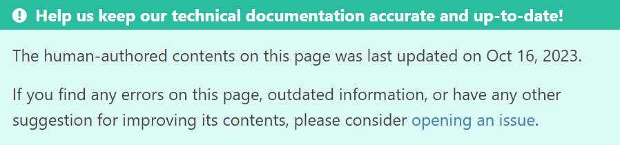 Furthermore, the page footer now indicates the last time someone updated the contents of a page. This can give you a hint about how up-to-date the information you are reading is.