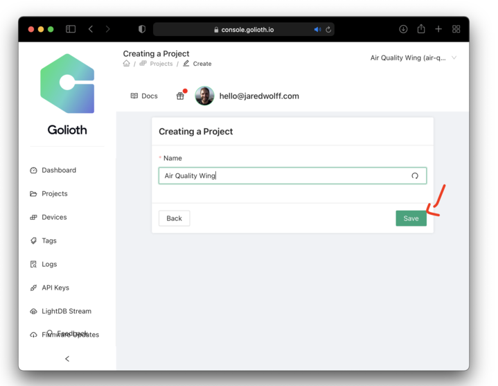 First jump over to Golioth and create an account if you haven’t already. Golioth is in open beta which means anyone can join!