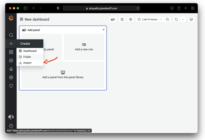 You’re almost there! Let’s get a Grafana interface set up. If you already have Grafana this should be a very straight forward integration. If you don’t I recommend you check out Grafana’s hosted service. I’ve also written about setting up Grafana in a past post.