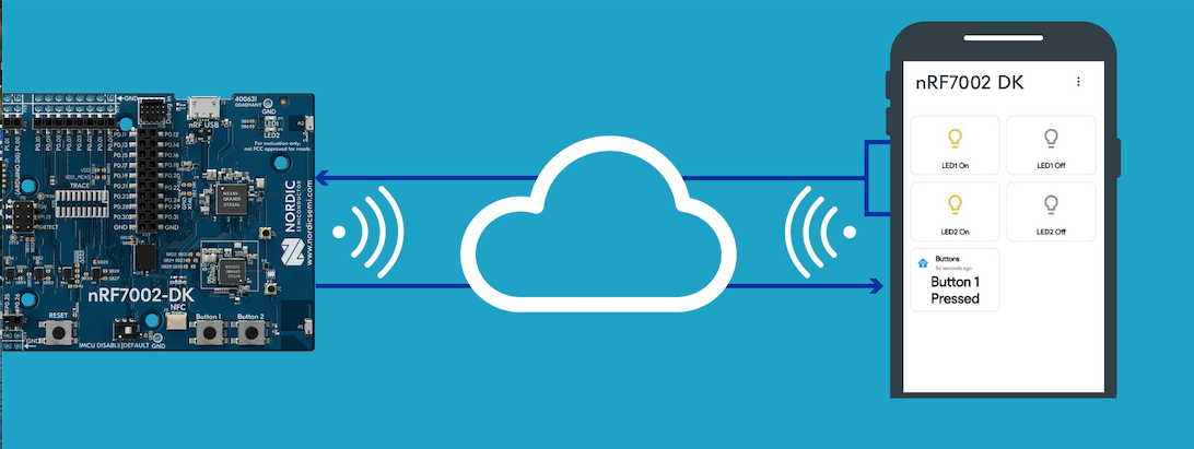 This blog post will get you up and running with the nRF7002 Development Kit (DK). First, we will show you how to securely connect your nRF7002 DK to your Wi-Fi network. Then, how to establish bidirectional communication over Wi-Fi between an MQTT client running on the nRF7002 DK and another MQTT client, running on a PC, tablet or smartphone, which enables you to control/monitor the board remotely. For this demonstration, we will control the LEDs and monitor the buttons on the nRF7002 DK remotely over Wi-Fi.