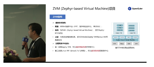 Guoqi XIE, a Professor at Hunan University, gave a keynote that announced the Zephyr-based Virtual Machine (ZVM), which was initiated by the University and the Zephyr SIG. ZVM’s source repo was setup under openEuler and managed by Zephyr SIG. He also shared an introduction of ZVM in ODD’s embedded workup in the afternoon. Additionally, Professor XIE will present the latest update of ZVM in Zephyr Developer Summit on June 27-30 in-person in Prague, Czech Republic or virtually.