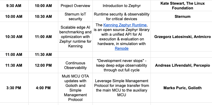If you’re at the main conference and still want to continue learning about Zephyr RTOS, attend one of our sessions that will provide valuable insights into this versatile RTOS. Check out the sessions, which includes a workshop, here.