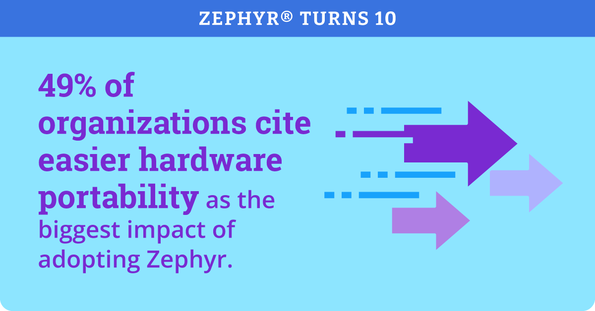 Nearly half of our respondents (49%) cited easier hardware portability as the biggest impact of adopting Zephyr. This flexibility is a game-changer for developers who need to move applications from discovery boards to custom hardware in days rather than weeks. By providing a shared ecosystem of drivers and middleware, Zephyr allows teams to focus on solving customer problems rather than rebuilding infrastructure from scratch.