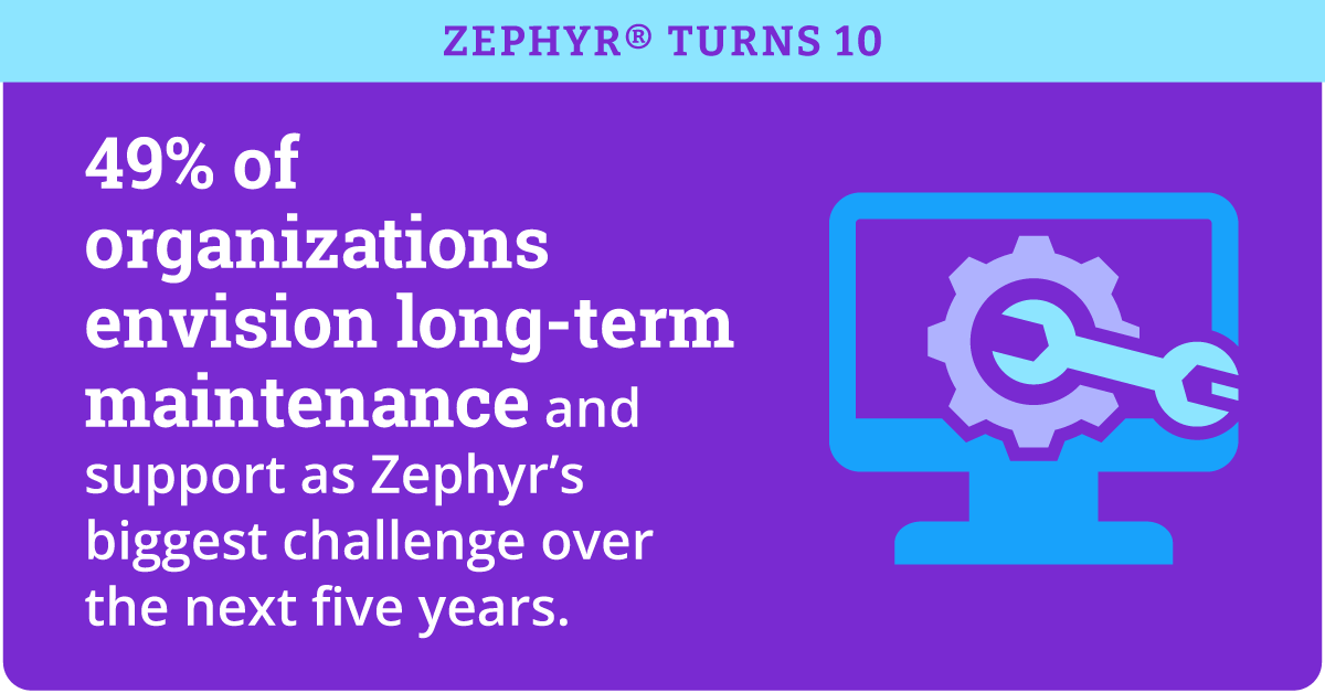 The momentum is undeniable: 69% of organizations plan to increase or significantly increase their use of Zephyr over the next few years, while only a nominal 1% expect a decrease. This isn’t just about usage; it’s about trust. Organizations are now making long-term production commitments, with 52% supporting products running Zephyr for five to ten years or longer.